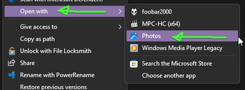 Open With->Photos