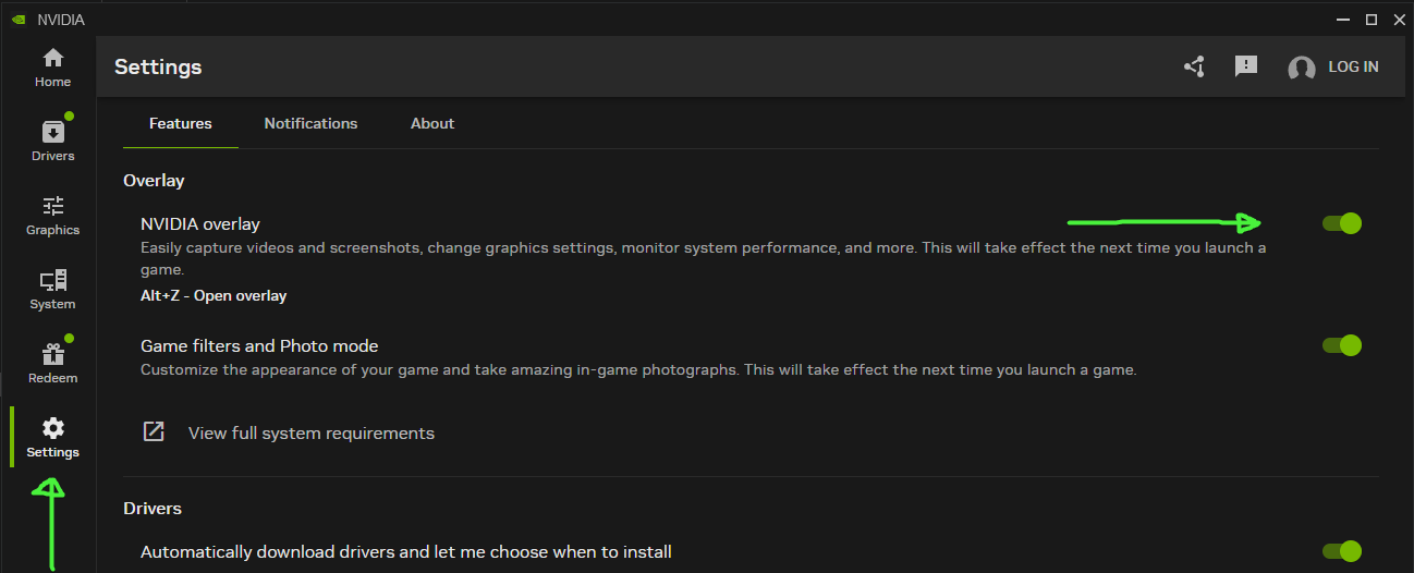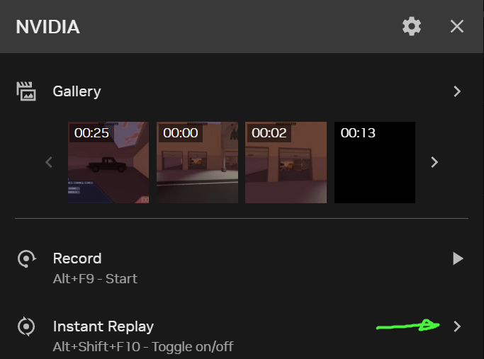 NVIDIA overlayThe NVIDIA overlay is pretty light and doesn't get in the way. It's needed for enabling Instant Replay which will be used for saving clips from the game.