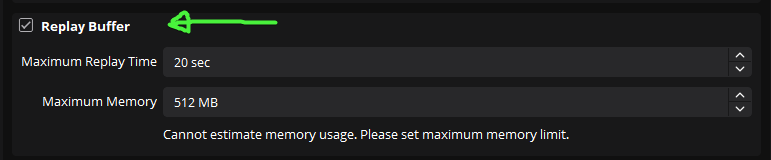 Replay BufferAdjust the duration and max memory settings as desired.