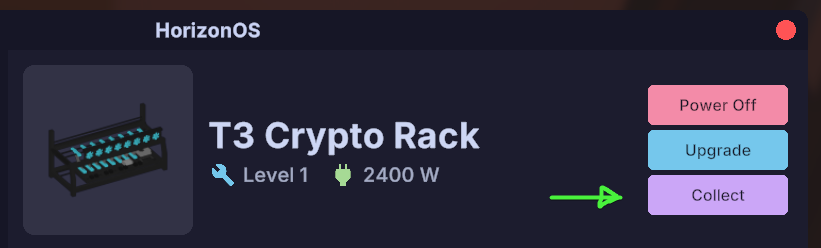 - Once your Crypto Rack has mined some cryptocurrency, you can click