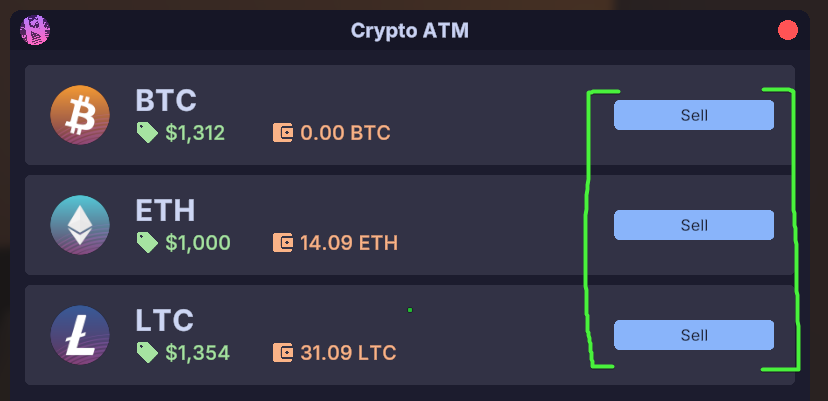 Cryptocurrency mined from your Crypto Racks can be sold at the Crypto ATM which is usually located at the Tech Store.
